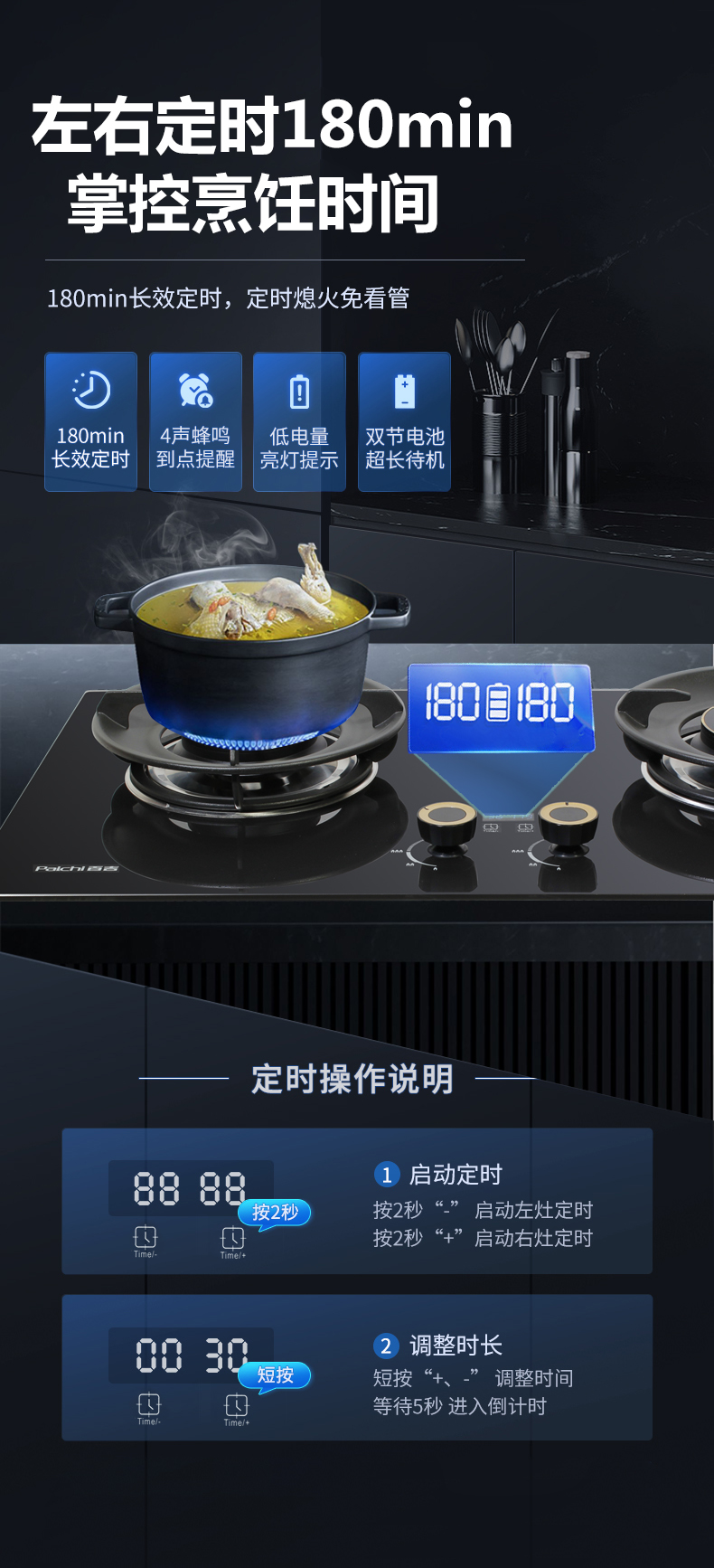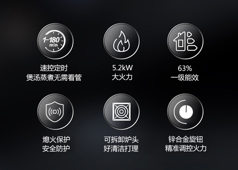 5.2kW聚能大火力,雙邊電子定時(shí)功能